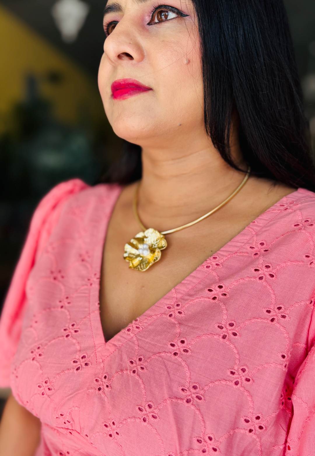 • Fabric: Premium Schiffli (cut work) cotton with cotton lining for a smooth finish