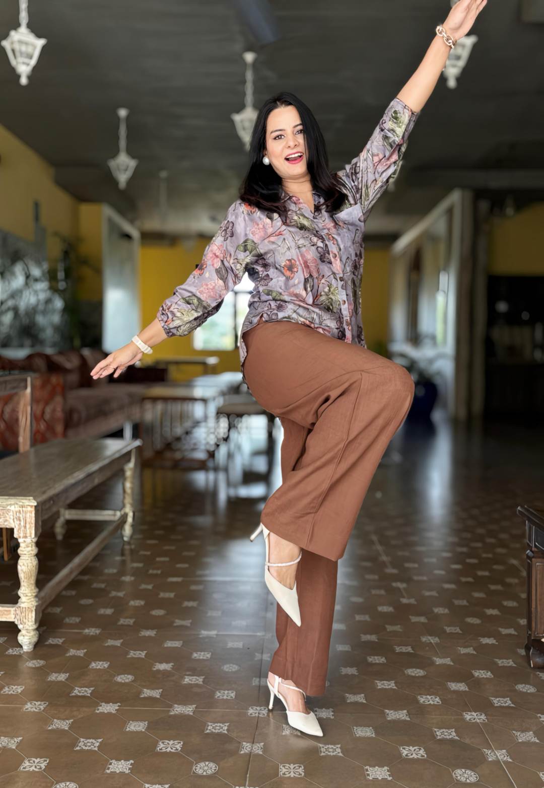 Pair it with brown, beige, or rust-toned trousers for a warm earthy palette, or offset it with cream for a classy contrast.